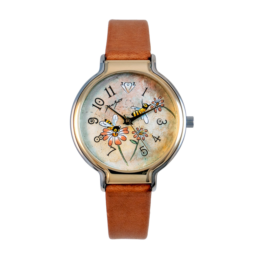 Montre femme tendance fini or et acier inoxydable/ ABEILLES FLEURS
