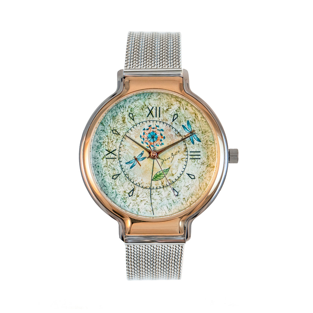 Montre tendance fini or rose et acier inoxydable / LIBELLULES FLEUR