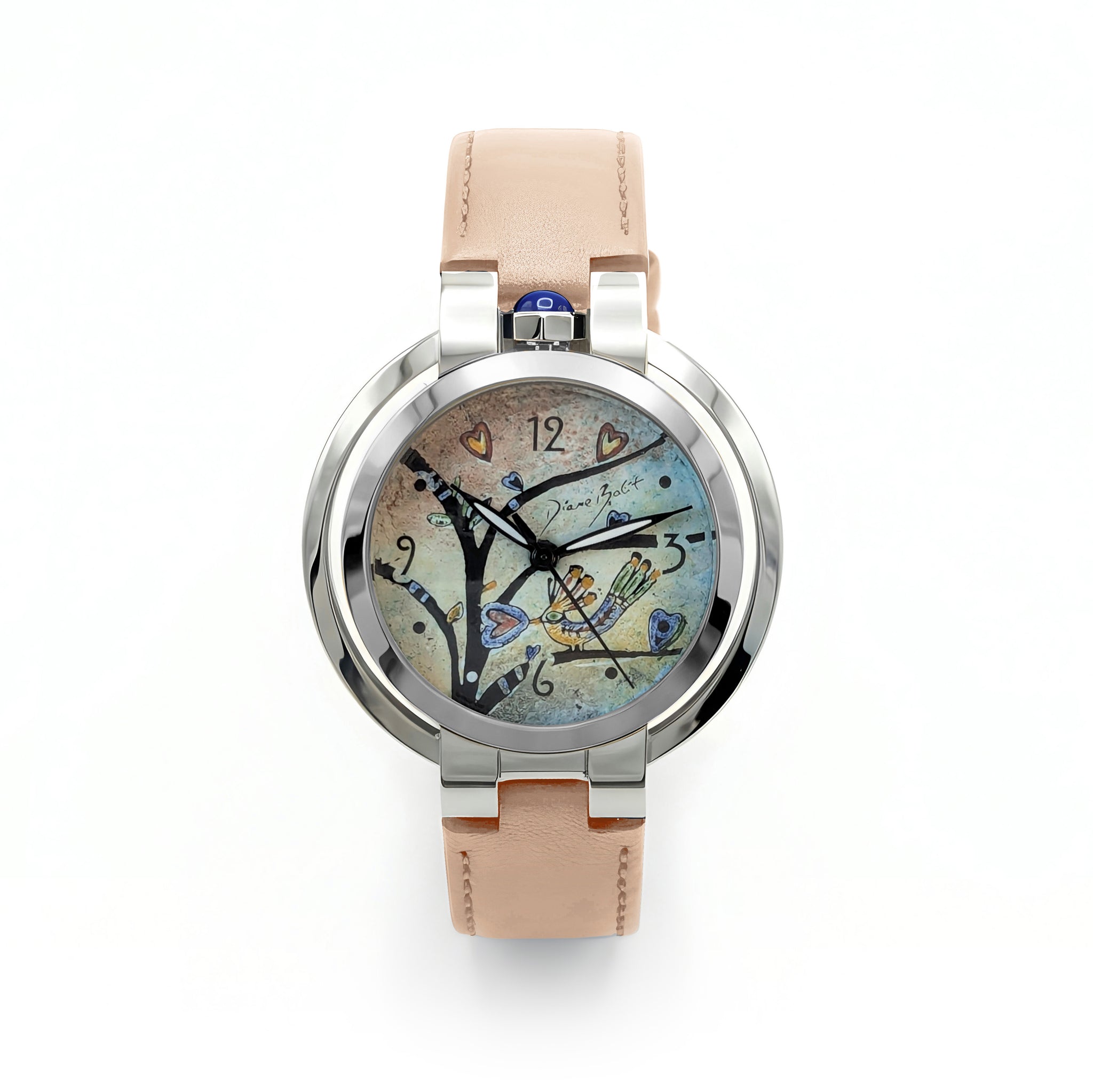 Découvrez cette montre d'exception ornée d'un cadran émaillé illustrant un oiseau exotique, minutieusement peint à la main et cuit à haute température pour une durabilité inégalée. Le boîtier en acier inoxydable épousé d'un bracelet en cuir véritable de teinte naturelle confère à cette pièce une élégance intemporelle. Un accessoire raffiné qui marie l'art horloger à l'expression artistique.