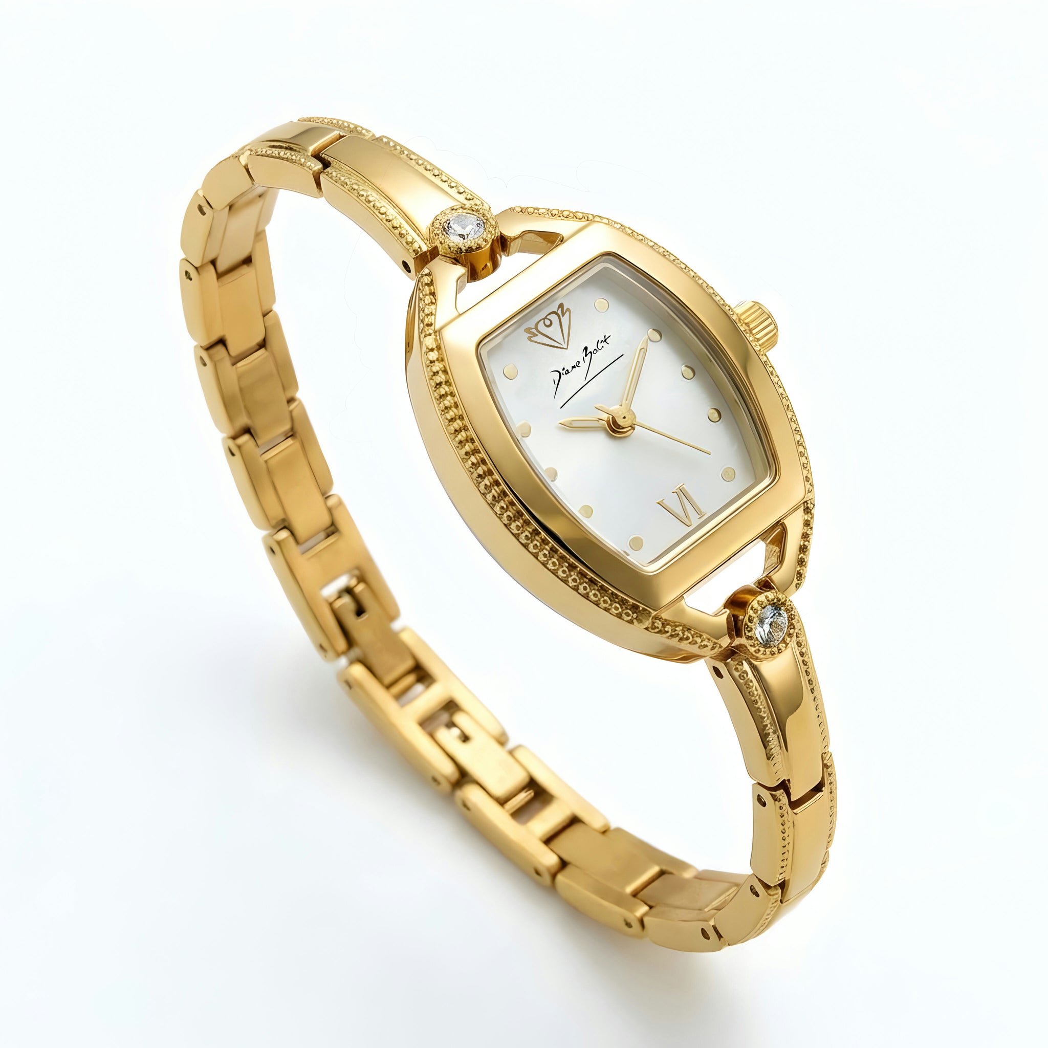 Découvrez cette montre rétro d'exception signée Diane Balit. Dotée d'un cadran caractéristique de la maison, elle se distingue par son boîtier serti de zircons et son bracelet maille en or 18 carats, ajustable à votre poignet. Une création intemporelle qui incarne l'élégance et le prestige.