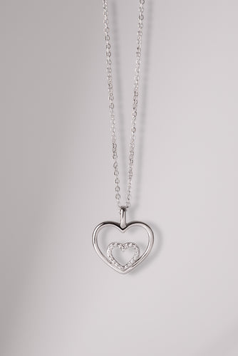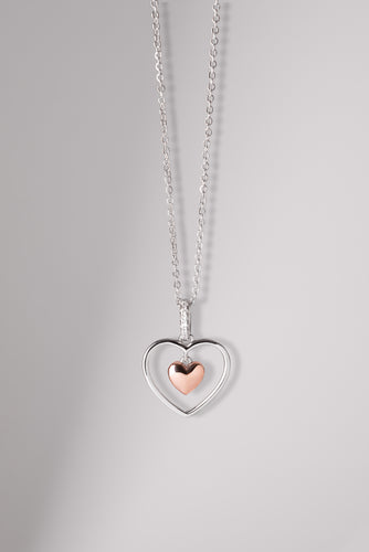 COLLIER COEUR MIXTE ET ZIRCONS/ ARGENT STERLING 925