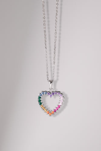 PENDENTIF COEUR SIMPLE MULTI COULEURS ZIRCON/ ARGENT STERLING