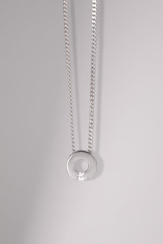 COLLIER ROND ZIRCON FLOTANT/ARGENT STERLING