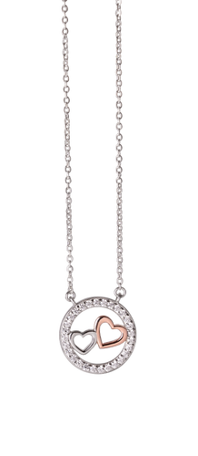 COLLIER ROND DEUX COEURS/ ARGENT STERLING 925