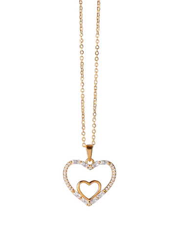 COLLIER COEUR DORÉ ZIRCONS/ ARGENT STERLING FINI OR