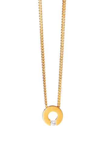 pendentif moderne rond zircon en appui/ argent sterling fini or